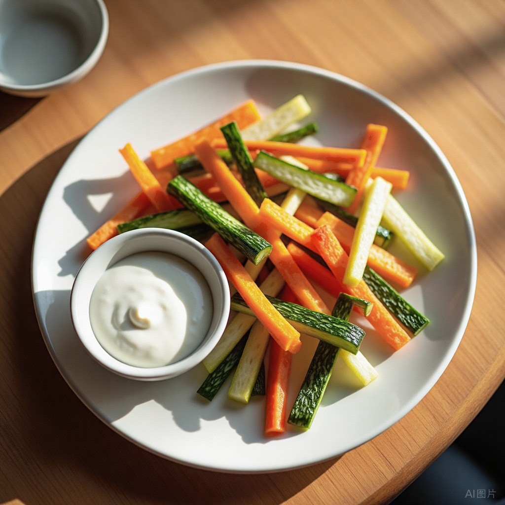 蔬菜条配希腊酸奶蘸酱,是小琳的控糖法宝。黄瓜、芹菜、彩椒切成手指长,蘸上浓稠的无糖酸奶,撒点芝麻或坚果碎,一口下去脆生生带奶香。这类“零食”几乎不升糖,还补钙补纤维。
