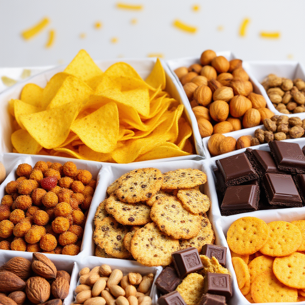 想象一下:当你终于哄睡小祖宗,轻手轻脚溜回客厅,瘫进沙发里,点开攒了好几天的剧集。这时,手边放着一个包装精美、分量十足的大礼盒。拆开它的瞬间,就像拆开一份送给自己的惊喜礼物——哇!琳琅满目的小可爱们挤在一起,色彩缤纷,香气仿佛透过包装纸钻出来。薯片的咸香酥脆、坚果的醇厚饱满、果干的酸甜开胃、巧克力的丝滑浓郁、肉脯的鲜香耐嚼……每一种都像在对你说:“辛苦了,快选我!”