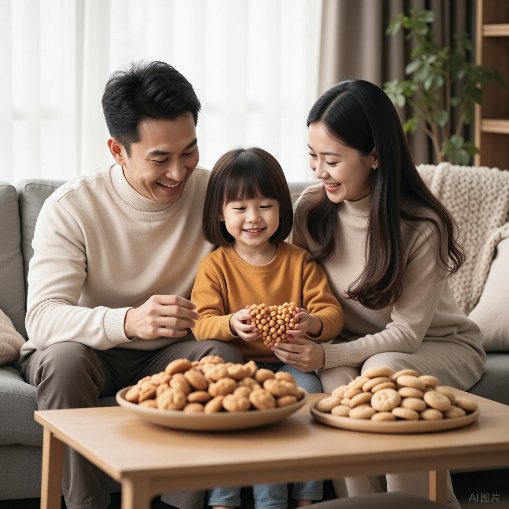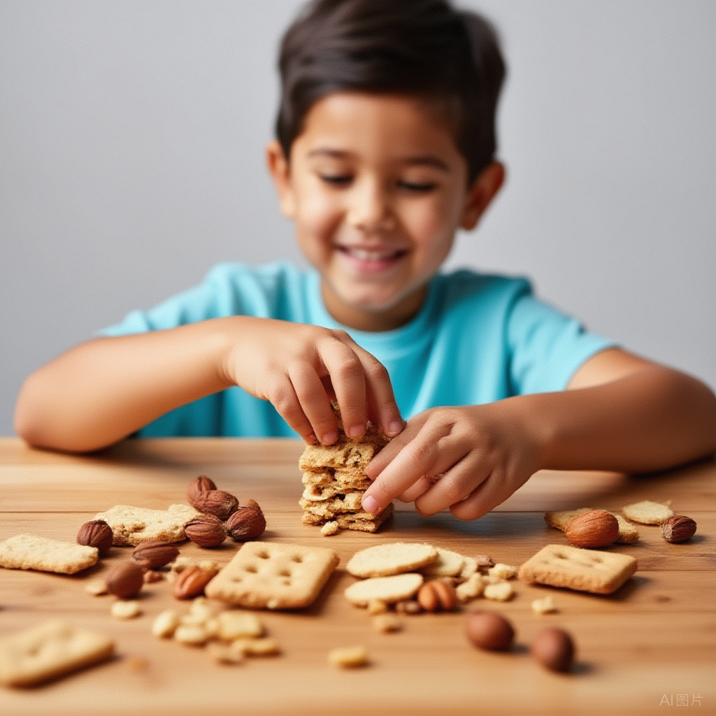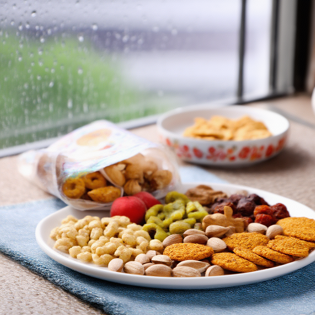 创意吃法层出不穷。用两块小圆饼干夹一点果酱,就是“迷你汉堡”;把几种不同颜色的小果干串在细细的谷物棒上,就是“彩虹糖葫芦”。小家伙忙得不亦乐乎,一会儿是“小小建筑师”,一会儿是“天才厨师”。他小心翼翼地运送他的“作品”到嘴里,每吃一口自己“创造”的食物,脸上的成就感简直要溢出来。咀嚼的声音代替了吵闹,专注的神情代替了烦躁。那包混合零食,仿佛变成了一个取之不尽的“创意材料包”,轻松化解了雨天困兽的躁动。偶尔,他也会大方地举着他认为最成功的“作品”:“爸爸,尝尝我的‘超级火箭’!” 老公配合地张大嘴,夸张地发出“嗷呜”声,小家伙乐得咯咯直笑。