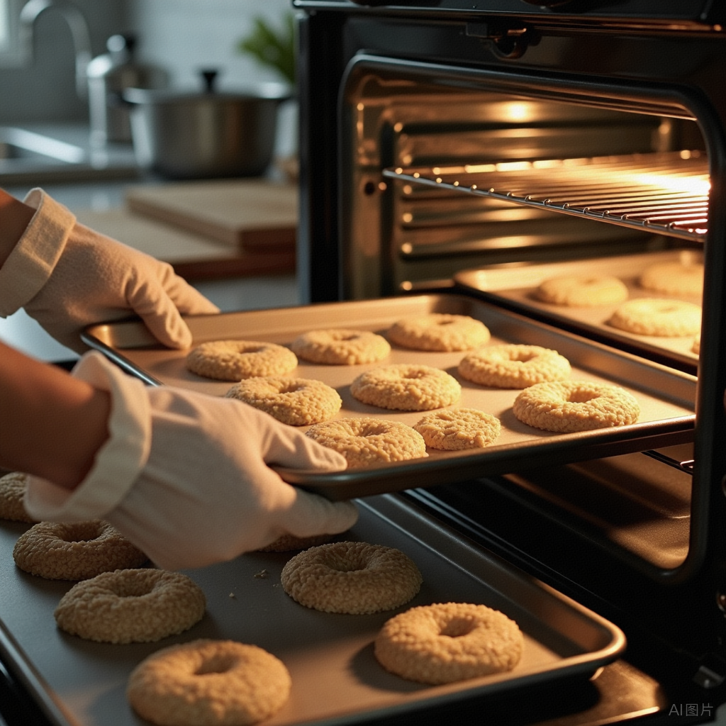 而把藜麦做成米饼,最大的亮点就在于“无油烘烤”这四个字。想想我们常吃的零食饼干,无论是酥脆的苏打饼还是香甜的曲奇,背后往往离不开大量的油脂参与。油脂固然能带来美妙的口感和香气,但也意味着更高的热量和脂肪摄入。无油烘烤,则彻底摒弃了传统煎炸或高油烘焙的方式,仅仅依靠食材本身的水分和烤箱的热力,让米饼慢慢脱水、定型、上色。这样做出来的米饼,最大程度地保留了藜麦和其他谷物的原始风味,那股子天然的谷物清香得以毫无保留地释放出来,口感是纯粹的酥脆,而非油腻的松脆。