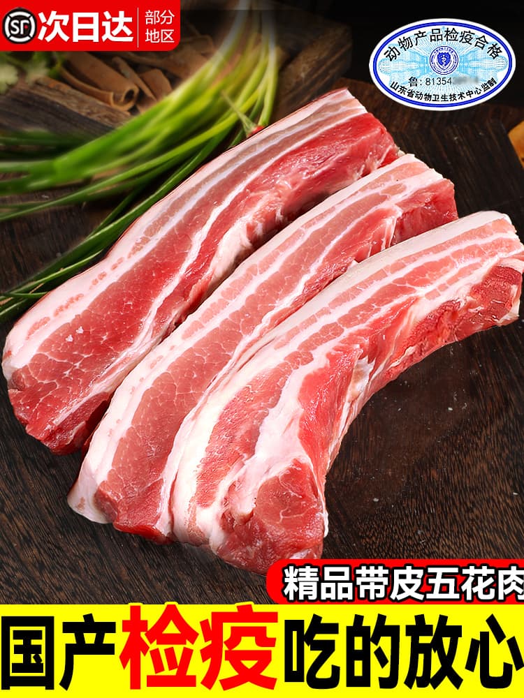 新鲜带皮五花肉-一级食材生鲜大块冷鲜肉